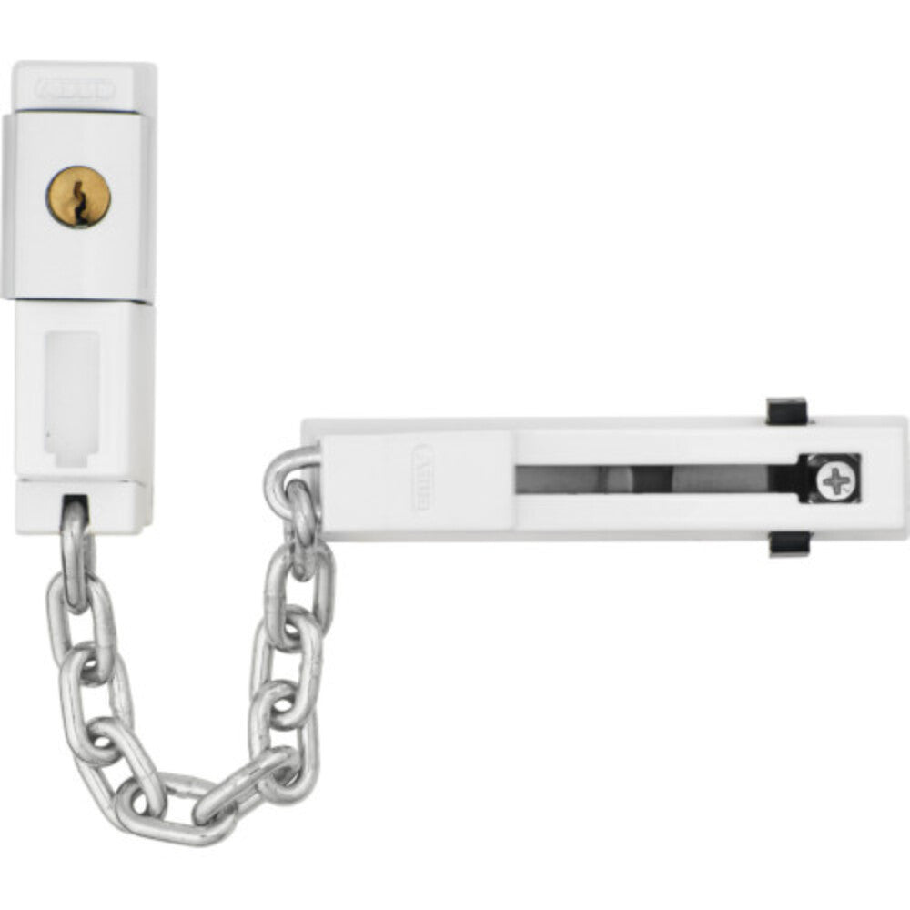 Fremde und ungebetene Gäste hindern Sie mit dieser Türkette konsequent am Betreten Ihrer eigenen vier Wände. Die gehärtete Spezialkette wird in eine robuste Schiene geschoben und kann zusätzlich mittels eines hochwertigen 4-Stift-Zylinders mit einem Schlüssel verschlossen werden. Eine Feder schützt zudem vor unbedarften Kinderhänden.