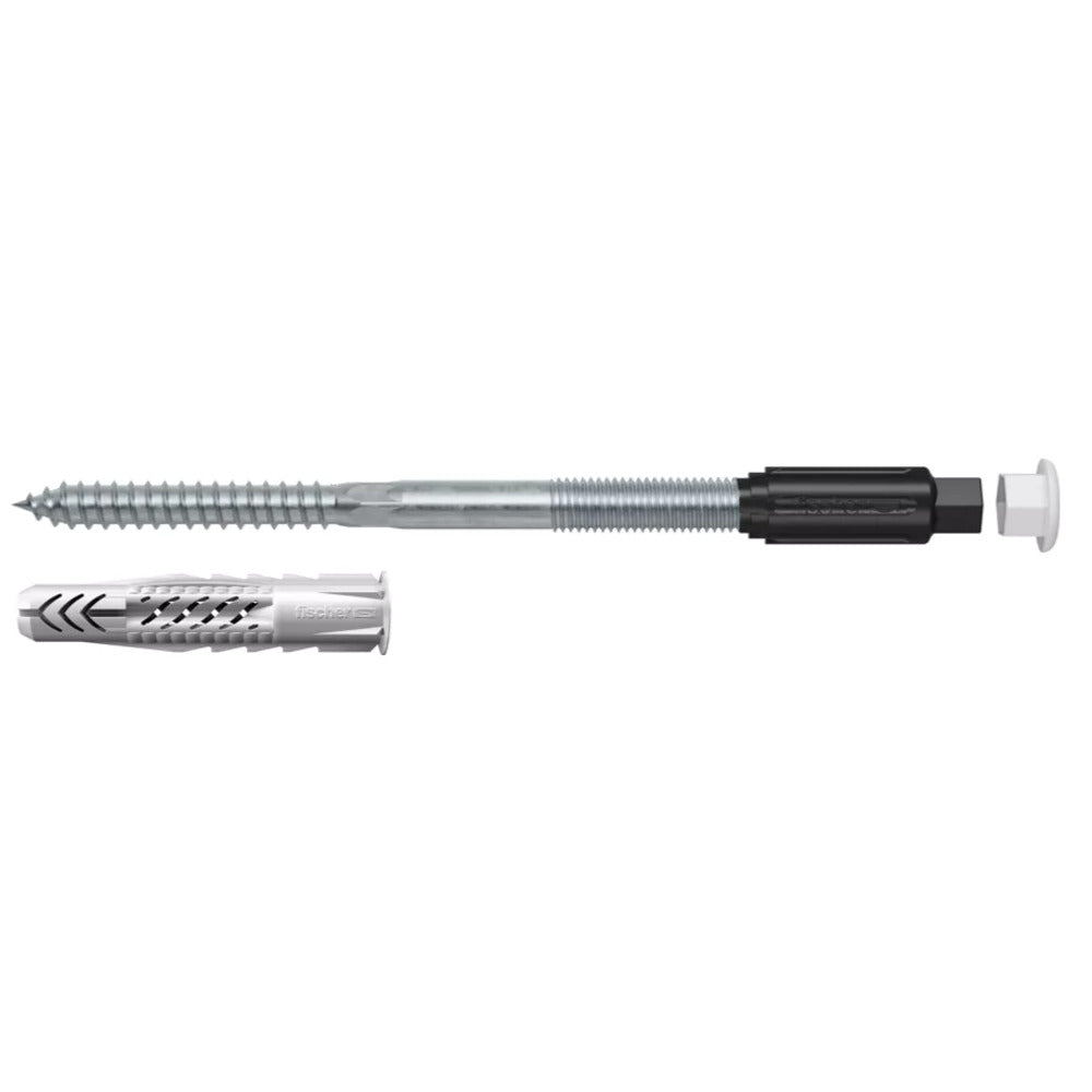 - Das fischer Abstandsmontagesystem TherMax 10 ist eine Lösung zur Befestigung in der Außenwand ohne Wärmebrücken im WDVS. Die Stockschraube mit dem glasfaserverstärkten Konus fräst sich selbstschneidend durch den Putz in den Dämmstoff. Die Stockschraube wird bei der Montage in den Universaldübel UX gedreht und verankert somit sicher im Baustoff. Der Anti-Kälte-Konus am Kopf der Stockschraube unterbricht die Wärmebrücke und nimmt die äußere Befestigung auf. Der TherMax befestigt leichte Lasten wie Leuchten, Briefkästen oder Blitzableiter in Beton, Porenbeton und Mauerwerk aus Loch- und Vollstein.