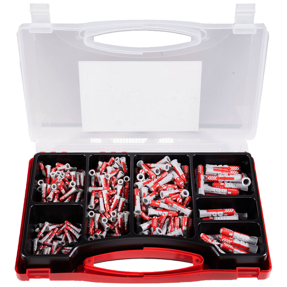 - Nachfüllbare Montagebox aus hochwertigem Kunststoff: optimale Übersicht durch transparenten Deckel und vorsortierte Dübel.